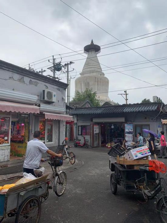 白塔寺片区自明代起由当地居民自发建设,缺少合理规划。这里的胡同22%宽度不足3米,20%的路口断头,90%以上市政承载力不足,29条胡同内被塞满了700多辆机动车,临近停车场超载率达200%。50%以上居民人均居住面积不足10㎡,70%建筑质量堪忧,68%居民忍受着没有户厕的不便,院落加建、垂直加建等问题十分普遍。